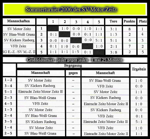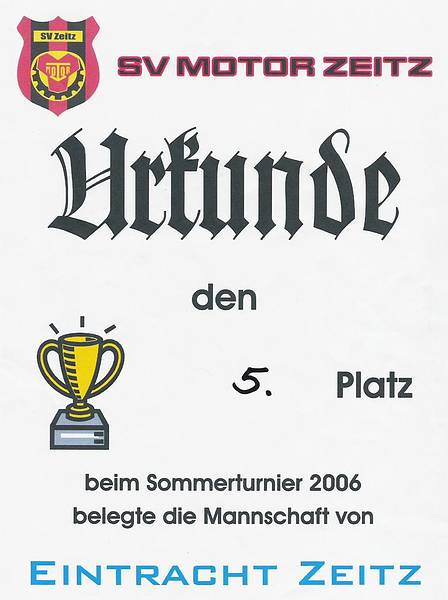 Eigentlich wollte die SG Eintracht Zeitz an diesem Turnier mit einer eigenen Mannschaft antreten, war dann aber doch auf Unterstützung von Motor Zeitz angewiesen. Viele kurzfristige Absagen von Spielern der Eintracht, machte es notwendig eine Spielgemeinschaft mit Motor Zeitz II zu gründen. Mit dieser Spielgemeinschaft konnten wir dann immer hin ein Unentschieden gegen den späteren Gewinner SV Motor Zeitz erreichen. Beim SV Motor Zeitz spielten unsere Mitglieder Matthias Rolle und Dirk Mussehl mit, die auch sonst beim SV Motor Zeitz bei den Alten Herren aktiv sind.